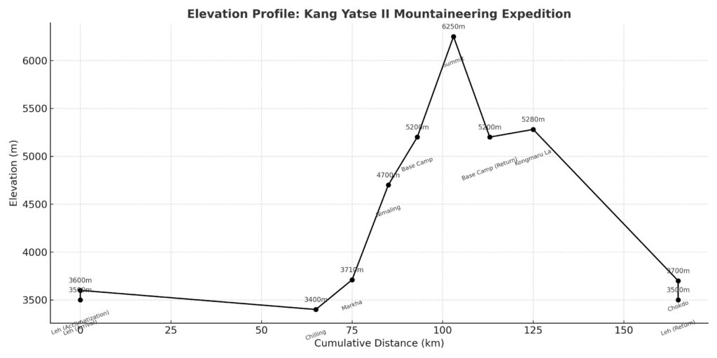 • Route: Leh → Chilling → Markha → Nimaling → Kang Yatse II Base Camp → Kang Yatse II Summit → Chokdo → Leh